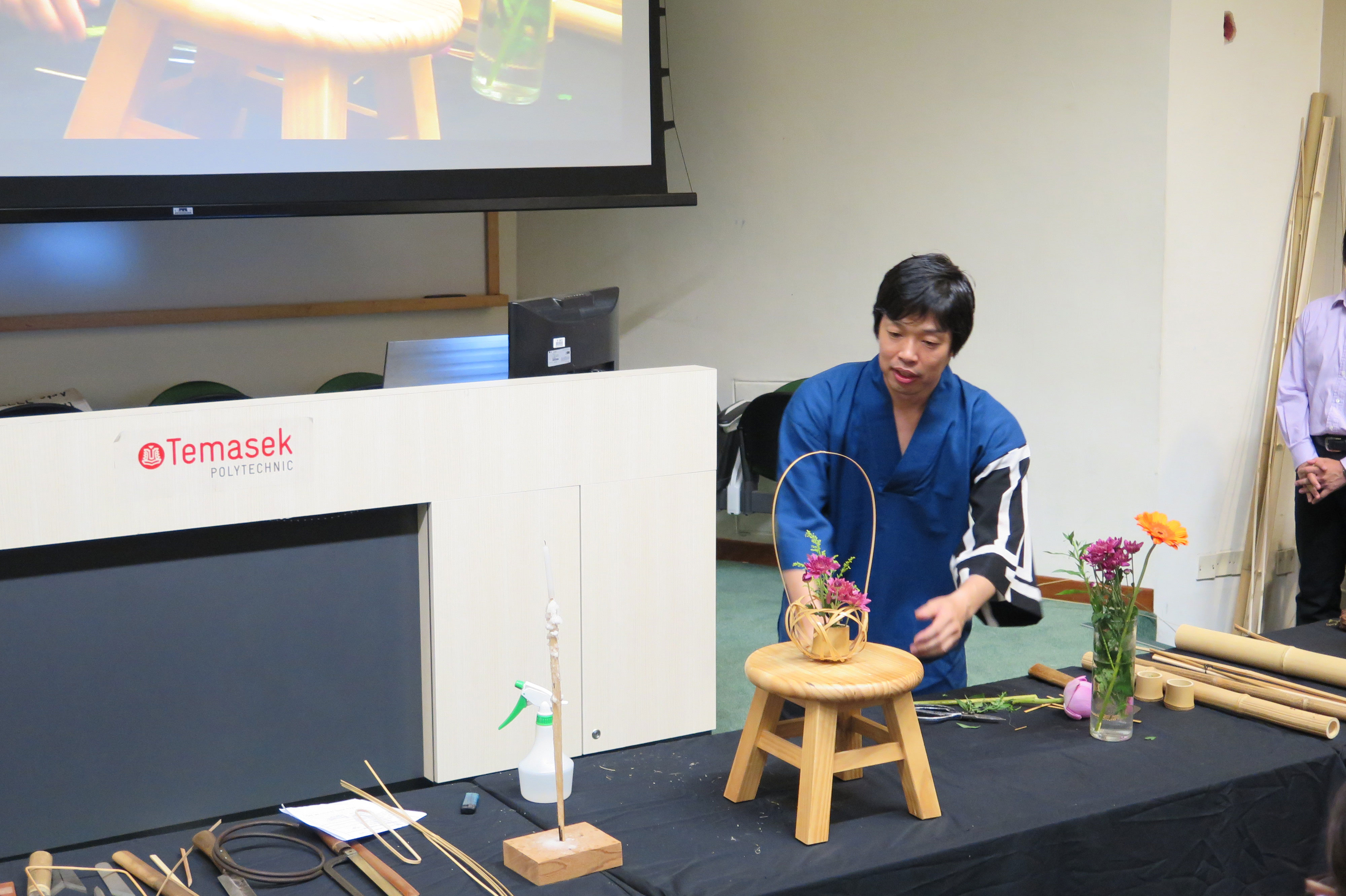 To end off his demonstration, Mr Tanabe showed students one of the basic art pieces that one can make out of bamboo, a flower basket. Students found themselves entranced at the live demonstration of skill by Mr Tanabe and the short time that it took for him to create a flower basket. Many of the students rushed to both Mr Shinno and Mr Tanabe after the lectures and demonstration to ask more questions and express their great interest in both ceramics and bamboo.