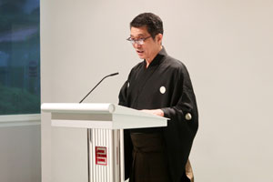 Mr Onda Koji, Kendo Hanshi 8-dan and Chief Kendo Lecturer in the House of Representatives, giving a lecture. |