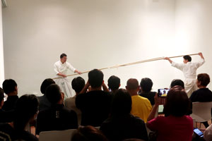 Co-organised with the Nippon Budōkan, an exclusive lecture and close-up demonstration of 12 different types of Budō (martial arts) was held at JCC on 28 November. JCC Director Ms Kawabe Akiko and Head of Budo Delegation Mr Kawabata Tatsuo welcomed guests into the world of Budō, whereby practitioners develop not only technical martial skills, but also the mind, character, morality and a respectful and courteous demeanour. Mr Onda Koji, Kendo Hanshi 8-dan and Chief Kendo Lecturer in the House of Representatives also gave a lecture, explaining lessons, concepts and principles learnt from Budo.