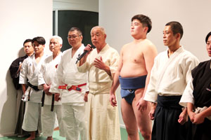 This was followed by a series of dynamic demonstrations by 30 athletes of 12 types of Budō -- Kyudo, Kendo, Hokushin Itto-ryu Kenjutsu, Naginata, Jukendo, Hozoin-ryu Takada-ha Sojutsu, Okinawa Goju-ryu Bujutsu, Shorinji Kempo, Aikido, Sumo, Judo, and Karatedo. Guests had the rare opportunity to ask the athletes any questions regarding the different Budō. We hope that this event has inspired people who are also practicing a Budō sport or are interested in trying it out!