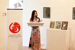 JCC Director Ms Kawabe Akiko delivered an opening speech, highlighting that this event is part of the official celebrations that marks SJ60, the 60th anniversary of Singapore-Japan diplomatic relations. Innoplan Singapore CEO Mr Kaneko Yukihiro and artist Ms Hashimoto also welcomed the guests.