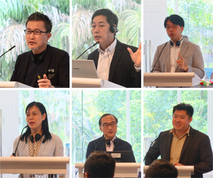 A series of presentations on the topic: What is the future direction of the sports business and community development? From left to right: (Row 1) Moderator - Dr Takahashi Yoshio, Professor at Waseda University Faculty of Sport Sciences, Mr Morita Masayasu, President and CEO of Dentsu Sports Asia