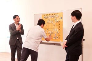 Participants play against professional shogi player Mr Sasaki Makoto during the experienced players’ session |