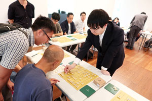 Professional shogi player Mr Takami Taichi provides advice to a participant in the experienced players’ session |