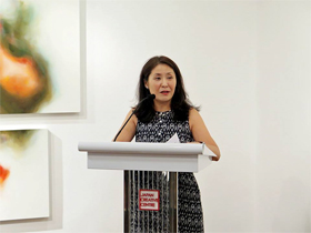 Ms Tomomi Nitta, the artist for this exhibition, during the start of the opening ceremony. |