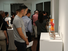 Mr Naohiro Tsutsumi, Ms Akiko Sugita and Ms Patricia Liang interacting with the ceramicists at the ceremony event. |