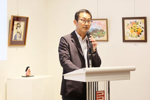 Mr Raymond Chan from Japanese Cultural Society (JCS) Creative Club speaking at the opening. |