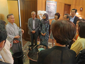 The 13th Grand Master of the Enshu School of Tea visited Singapore recently for his annual visit to teach at the National University of Singapore (NUS) and held a special Tea Ceremony at the Ambassador’s Residence on 24 August 2018. Hosted by the Ambassador of Japan to Singapore, His Excellency Ambassador Kenji Shinoda and his wife Mdm Yuko Shinoda, this tea ceremony was attended by Mrs Tan-Chua Lik Ling, Head of Children and Youth at the Esplanade, His Excellency Mr Chin Siat Yoon, former Singapore Ambassador to Japan and his wife Mrs Chin-Wang Lee Moi, Mr Ng Chee Khern, Permanent Secretary at the Prime Minister’s Office, Mr Peter Tan, Managing Partner at SkyVen Asset Management Pte Ltd and his wife Mrs Sharon Tan, Mr Adrian Tan, owner of Adplanet, and Mrs Tan Shook Wah, Director of Adplanet. The Guests of Honour for this occasion was Minister for the Environment and Water Resources, His Excellency Minister Masagos Zulkifli, and his wife Mdm Jumelah.