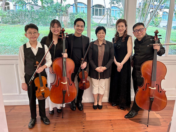 From left: Two talented young Singaporean musicians Mr Aaron Tan and Ms Alyssa Tan, Singaporean violinist Mr Gabriel Lee, JCC Director Ms Kawabe Akiko, Japanese pianist Ms Kyoko Koyama and Japanese cellist Mr Yunosuke Yamamoto.